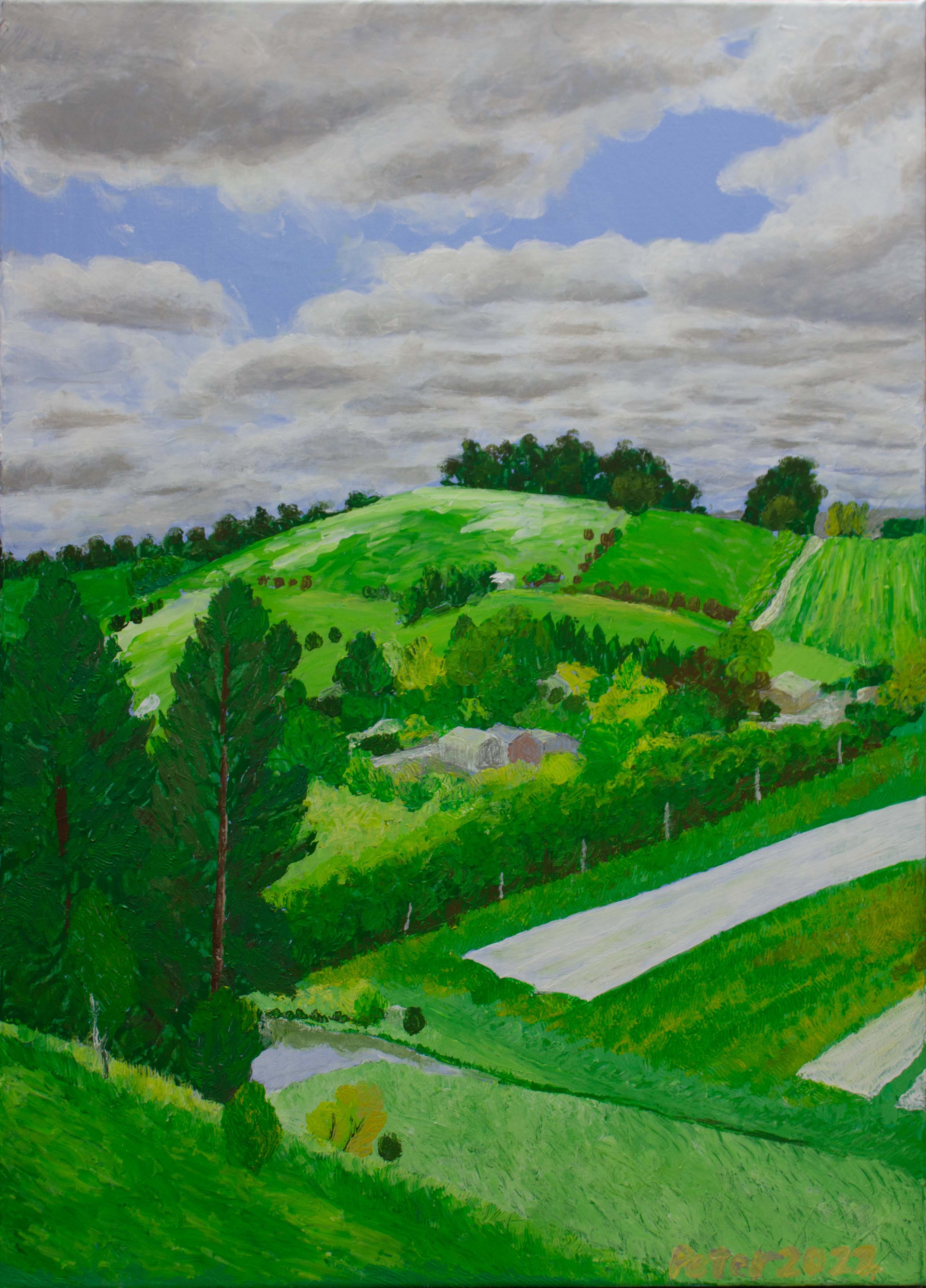 The paintings are on canvas on a wooden support and are unframed. This is just a sample of paintings. (typically 50 x 70 cm)